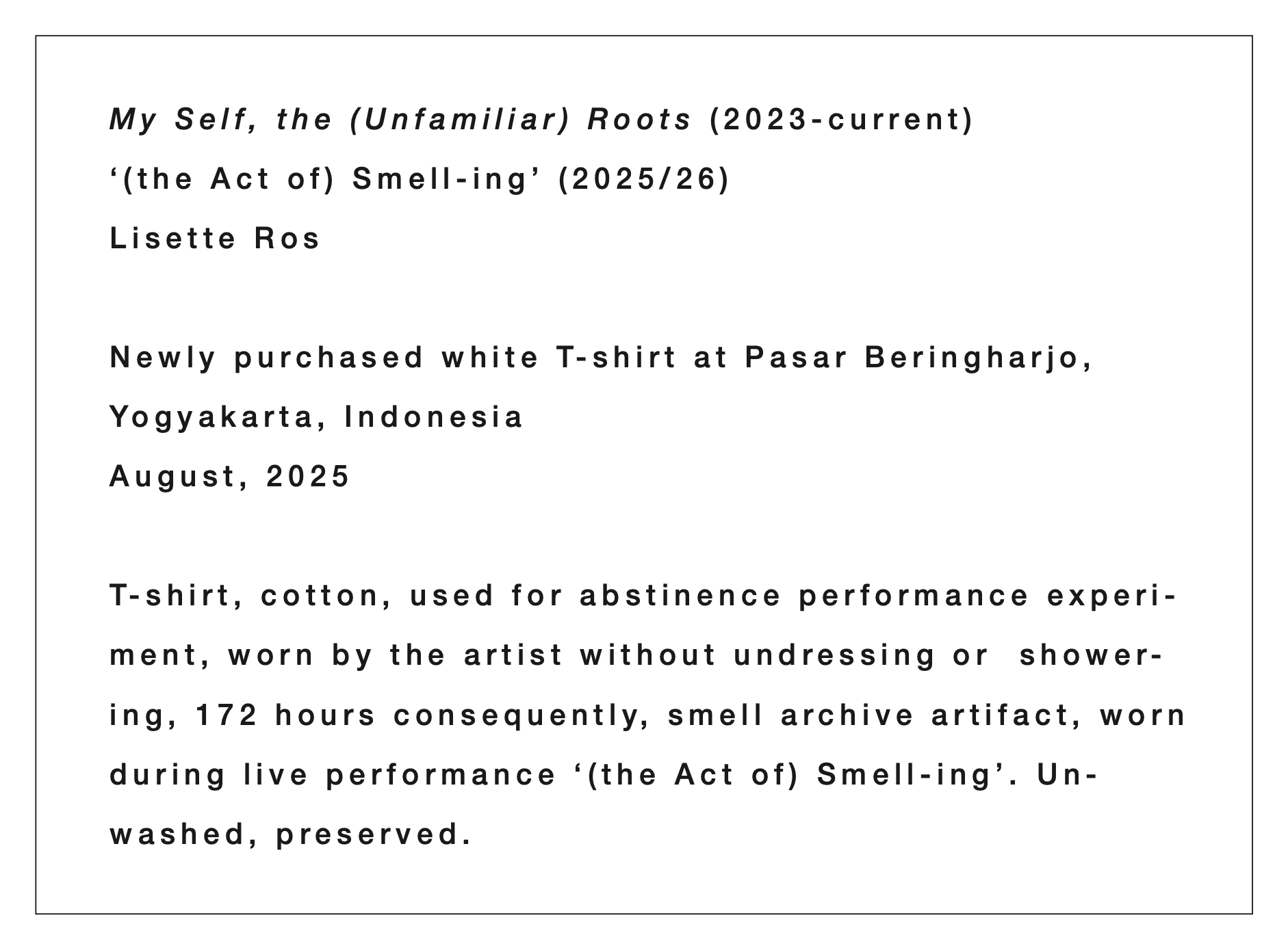 ‘(the Act of) Smell-ing’ (2025)
